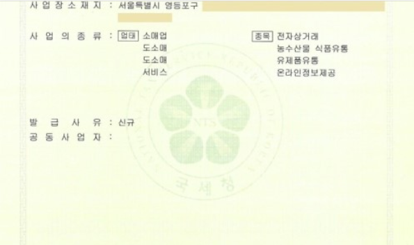 업태(대분류) : 도소매업 / 종목(소분류) : 전자상거래.